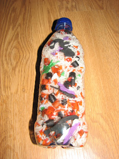 Eye spy bottles are a lot of fun. Jada and her friends have been shaking the bottle looking for the hidden Halloween objects. They are easy to make and free if you have rice, pasta and a few odds and ends already in your craft stash.